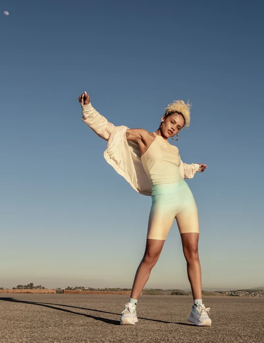 Nowa kapsuła to projekty wykorzystujące pastelowe odcienie błękitu i różu. Znajdziemy tu połączenie produktów sportowych, takich jak: staniki i spodenki typu biker, z modowymi propozycjami w postaci butów na platformie. Aby jak najlepiej oddać klimat kolekcji, zdjęcia do kampanii powstały o wschodzie i zachodzie słońca.