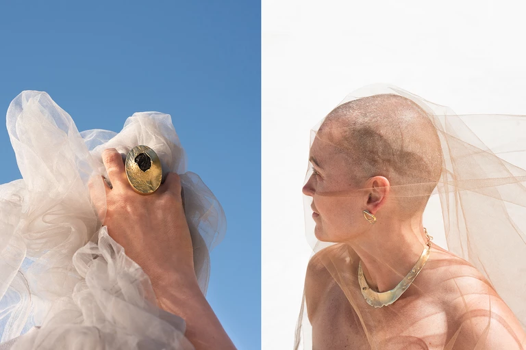 Czarne bryły o tęczowym połysku i fakturze przywodzącej na myśl krystalizację naturalnych minerałów, wyróżnia nie tylko atrakcyjny wygląd. Wykonane przez Weronikę Banaś z recyklingowanego plastiku z dodatkiem opiłków mosiądzu z pracowni ORSKA, są wytrzymałe i lekkie, dzięki czemu nie obciążają dodatkowo biżuterii. Nowy syntetyczny kamień został opatrzony pieczęcią, informującą o jego pochodzeniu – „made by Homo Sapiens” – i przypominającą, że nasze dzieła to też nasza odpowiedzialność. Planeta nie poradzi sobie sama ze wszystkim, co po nas zostanie, a szczególną trudność będzie miała z wytworami, które od niej nie pochodzą. Klejnot ORSKA jest dowodem na to, że przedmiot pożądania można stworzyć nawet ze wszechobecnego współczesnego nemezis.