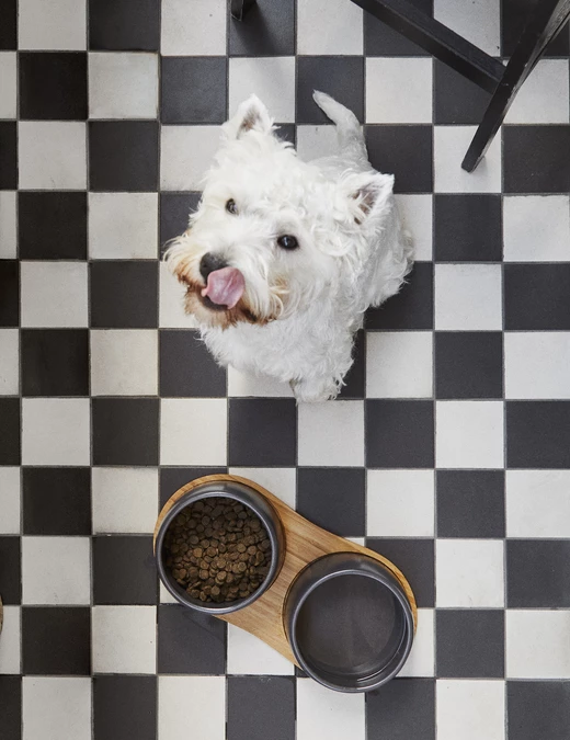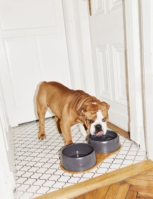 - Ceramiczne miski dla psów, które można wybrać również w zestawie z bambusową podstawką. Naczynia mają specjalne obciążenie, dzięki czemu zapewniają wysoką stabilność podczas posiłku. Miski stanowią również stylowy dodatek, który wpisze się w wystrój nowoczesnych wnętrz. Występują w dwóch kolorach: OYSTER oraz DARK STONE.