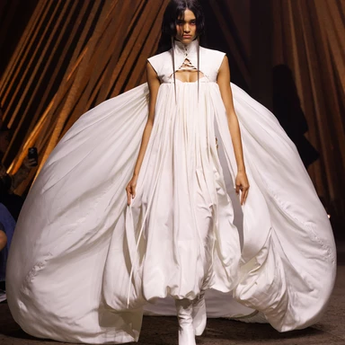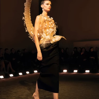 Erdem w swojej kolekcji „Romantic Cycles” na sezon Spring/Summer 2026 sięga po inspiracje XIX-wiecznym mediumizmem. To studium historycznej formy poddanej współczesnej wrażliwości - patchworkowe, antyczne koronki łączą się tu z krynolinami typu panniers. Kolekcja emanuje duchem minionych epok, ale dzięki surowym wykończeniom i nieoczywistym zestawieniom florystycznym, pozostaje mocno osadzona w teraźniejszości, celebrując piękno tego, co nieidealne.