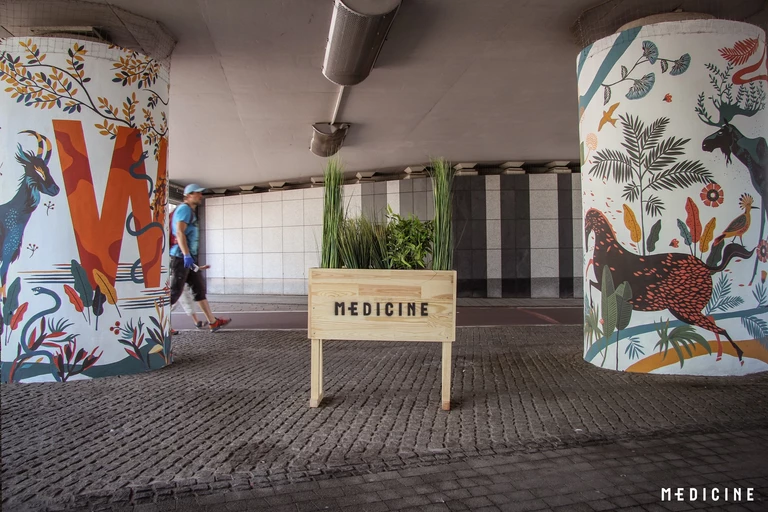 Koncept muralu to wspólny projekt grafików Medicine – Pauliny Czak, Piotra Jakóba, Joanny Krótkiej oraz Olgi Mulicy.