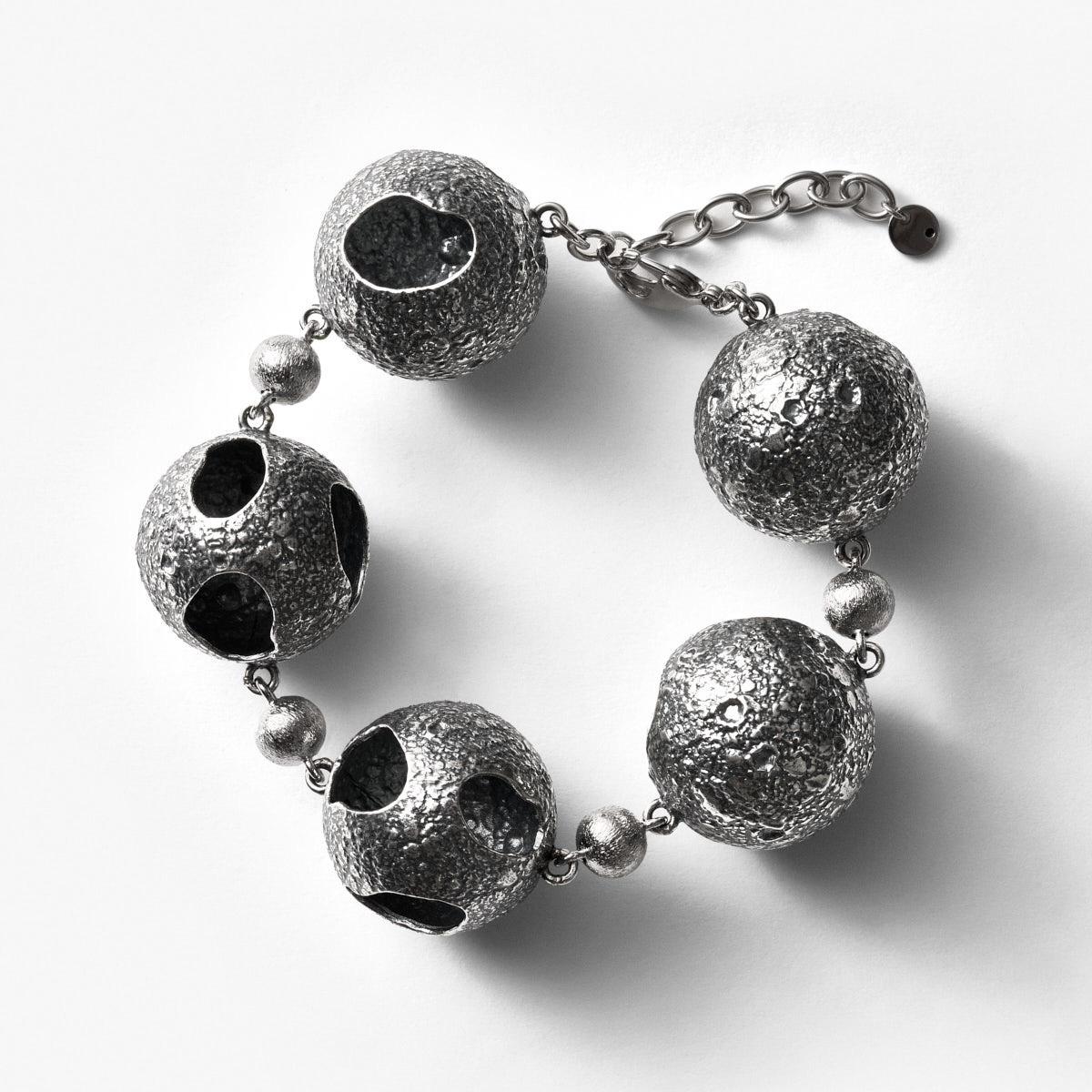 W skład kolekcji wchodzą naszyjniki – zarówno z pojedynczą kulą na długim łańcuchu, jak i te złożone z wielu elementów – pierścionki i sygnety, kolczyki, nausznice oraz bransolety. Dopełniają ją akcesoria: broszka w formie szpilki, spinki do włosów oraz przypinka z hasłem „JESTEM PEŁNIĄ”. Poszczególne elementy, zaprojektowane jako uniseksowe, pozwalają na własne interpretacje i noszenie ich na indywidualnych zasadach.