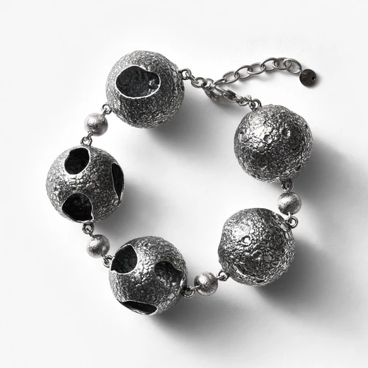 Wizja artystki została przełożona na język biżuterii przez zespół Projektantek W.KRUK. Wiodący motyw kuli zinterpretowano na wiele sposobów – poprzez zwielokrotnienia, łączenie faktur, zróżnicowane wielkości czy wprowadzenie koloru. Design kolekcji jest wyrazisty i nowoczesny. Surowa, chropowata struktura, przywodząca na myśl powierzchnię księżyca, kontrastuje z gładkimi, lśniącymi elementami. Całość zdobią oksydowane grawerunki z przesłaniami kolekcji: „JESTEM PEŁNIĄ” oraz „W PEŁNI SOBĄ”. Biżuteria wykonana została z rodowanego mosiądzu, pokrytego srebrem i kolorową emalią, łącząc to, co pozornie odległe.