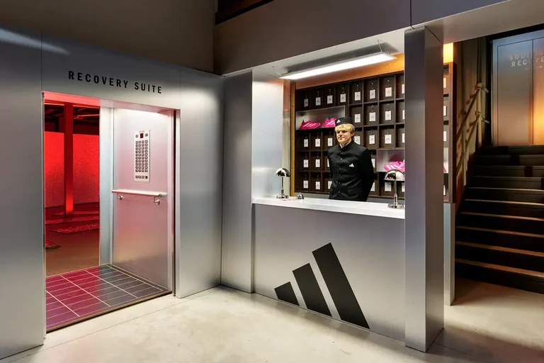Pobyt w hybrydowym hotelu stworzonym przez markę adidas zdecydowanie wykracza poza uroki krioterapii, sauny czy witaminowego koktajlu. W pięciogwiazdkowym przybytku zlokalizowanym w Caxton Works zmeczeni po biegu sportowcy mogą poddać się terapii światłem czerwonym, zrelaksować się w strefach dźwięku i zasięgnąć rad o tym, jak najefektywniej odpoczywać. Adidas zapewnił bowiem indywidualne sesje coachingowe z czołowymi ekspertami, takimi jak Graham Halliday czy Chris Hinshaw.