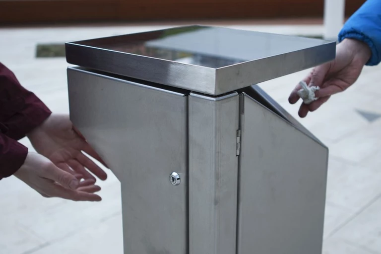 Dozownik wykonany jest ze stali nierdzewnej co sprawia, że nawet wieloletnie używanie i narażenie na działanie deszczu oraz słońca nie pozostawia na nim większego śladu. Oczywiście dyspenser uruchamiany jest bezdotykowo, podawanie płynu aktywuje czujnik zbliżeniowy.