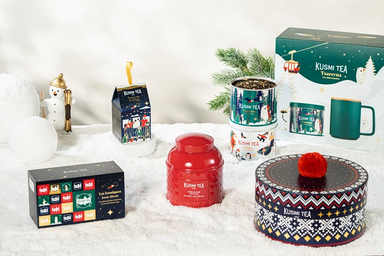 Kusmi Tea prezentuje świąteczne herbaty, które wyróżniają się unikalnymi smakami i eleganckimi opakowaniami, idealnymi na prezent. W kolekcji znajdziemy mieszanki pełne zimowych aromatów – w tym cynamonu, kardamonu i wanilii – które doskonale oddają atmosferę Bożego Narodzenia.