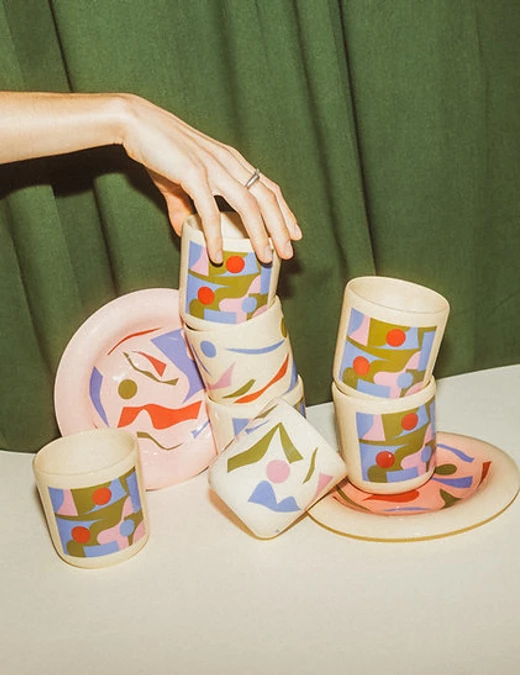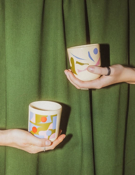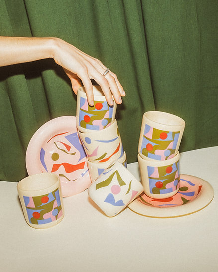 FIGLE to limitowana kolekcja naczyń powstała z artystycznej współpracy ceramiczki Agaty Puławskiej i projektantki Oli Szczepaniak. Charakterystyczne dla Szczepaniak kolorowe wycinanki, znane z jej pracy z papierem i grafiką cyfrową, zostały przeniesione na ceramikę.