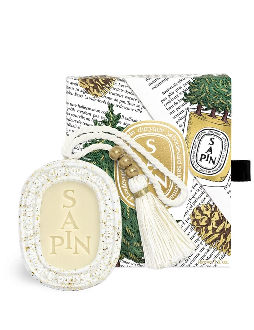 W edycji Sapin od Diptyque, dostępnej w Galilu, kultowy zapach iglastego lasu został uchwycony w eleganckiej, subtelnej formie. Do wyboru są między innymi świeca, zapachowy owal oprawiony w białą ceramikę oraz kompaktowy mini roomspray.
