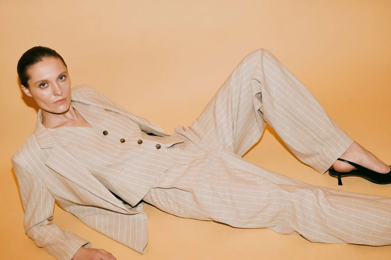 W skład kolekcji wchodzi garnitur MONACO – marynarka i spodnie w odcieniu beżu, uszyte z wysokiej jakości włoskiej tkaniny z acetatową podszewką. W serii znajdziemy też katanę LOUISE i spodnie HARMONY – zestaw wykonany z bawełnianego, beżowego sztruksu sprowadzonego z Hiszpanii. Spodnie o szerokiej nogawce i wysokim stanie, z charakterystycznymi cięciami i zakładkami, spójnie komponują się z oversize’ową kataną.