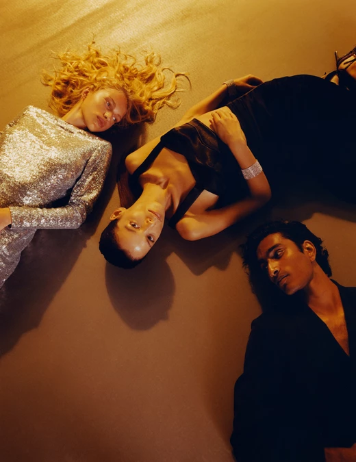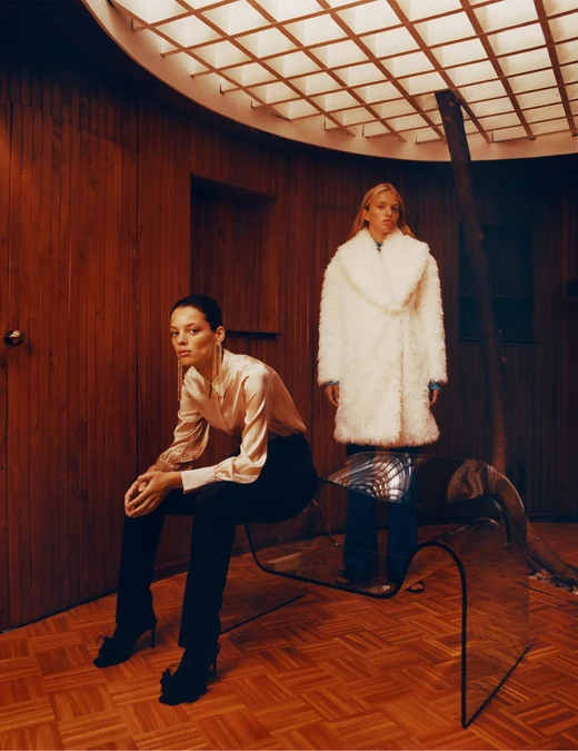New Femininity to również śmiałe cekinowe sety, które można dowolnie łączyć z innymi elementami. Całość dopełniają akcesoria – skórzane rękawiczki, wyrazista biżuteria ze strassem oraz wełniane szale.