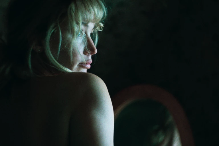 Zdjęcie główne: Jennifer Lawrence w „Zgiń kochanie" (2025); © MUBI / Kimberley French