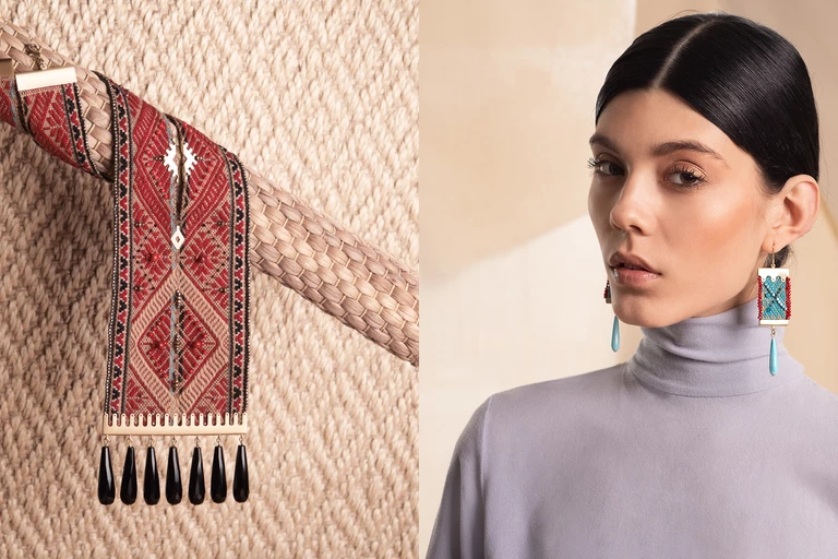 Wykorzystując miękkie tkaniny w biżuterii, ORSKA przeniosła te opowieści do Polski i rozpoczęła ich zupełnie nowy rozdział. Dzięki pracy kilkunastu hafciarek tkaniny zostały wzbogacone haftem koralikowym, w którym wykorzystano kamienie naturalne, takie jak szafiry, rubiny, granaty, akwamaryny, onyksy i piryty i wiele innych. Delikatne koraliki uszlachetniają tkaninę, a ich drobne fasety ożywiają peruwiańskie motywy połyskując przy każdym ruchu. Jubilerzy oprawiając każdy egzemplarz pod wymiar w ramy nawiązujące do inkaskich zdobień skomponowali zgrabne, pełne charakteru wykończenie.