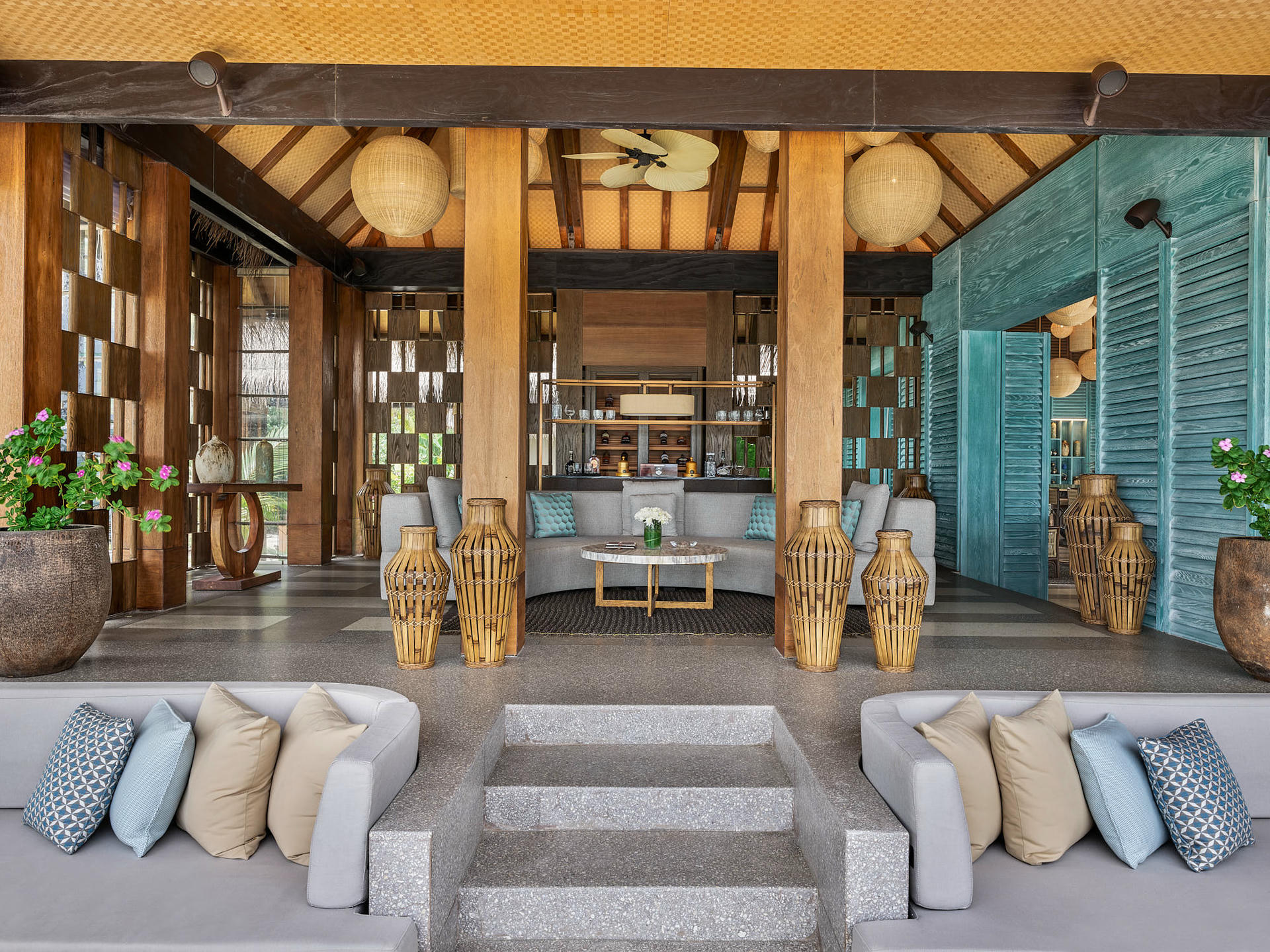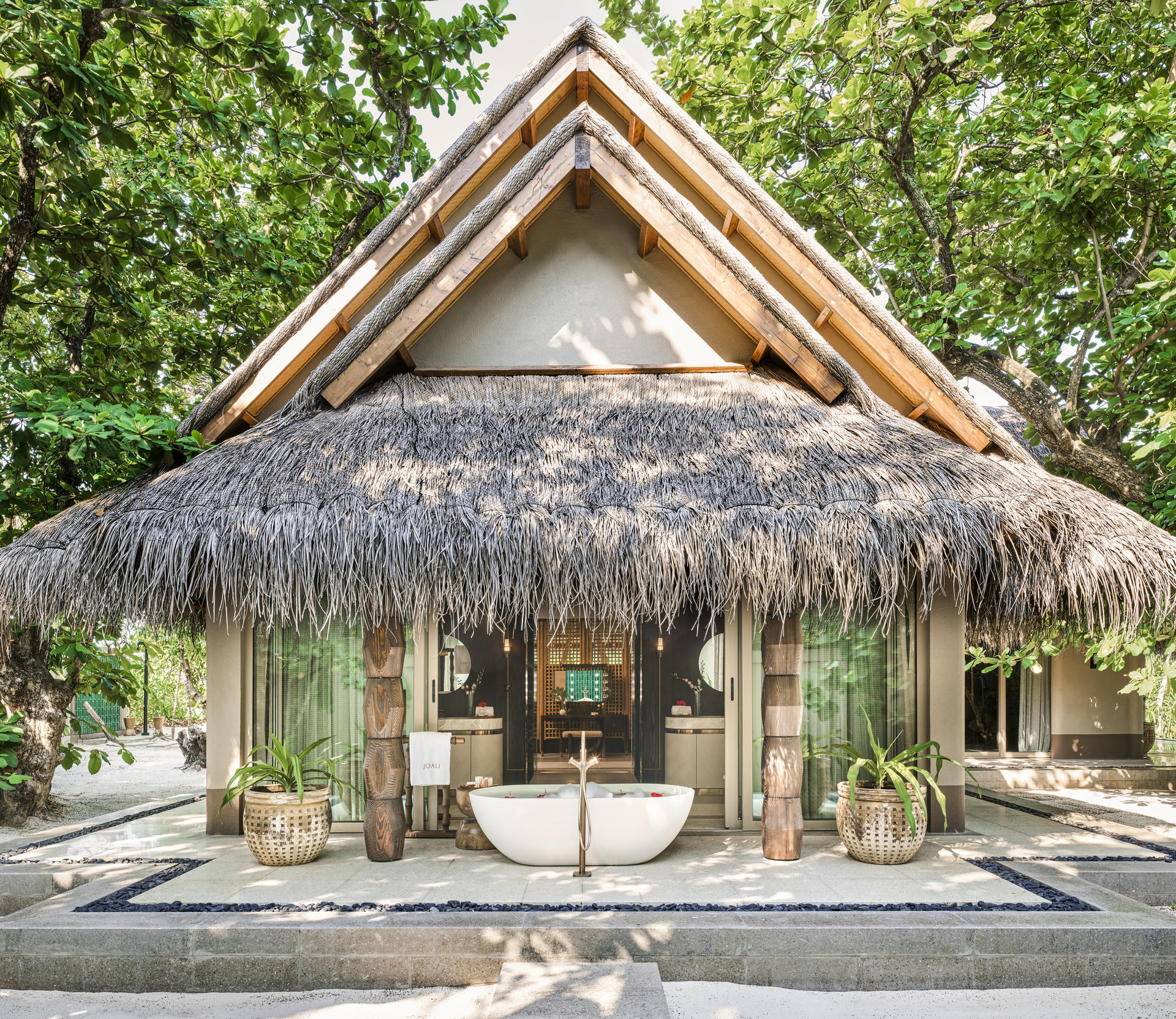 JOALI funkcjonuje jak żywy organizm. Wnętrza płynnie łączą się z otoczeniem, a granica między tym, co wewnątrz i na zewnątrz, niemal zanika. Wille, restauracje i strefy wspólne zaprojektowano jako osobne mikroświaty, z których każdy opowiada inną historię, lecz wszystkie razem tworzą spójną całość. Lokalne materiały, ręczne rzemiosło i autorskie rozwiązania nadają przestrzeniom szlachetny, a zarazem niewymuszony charakter.