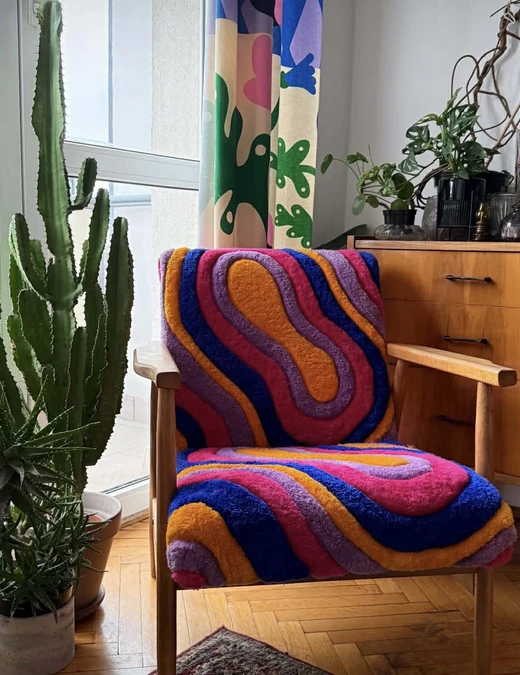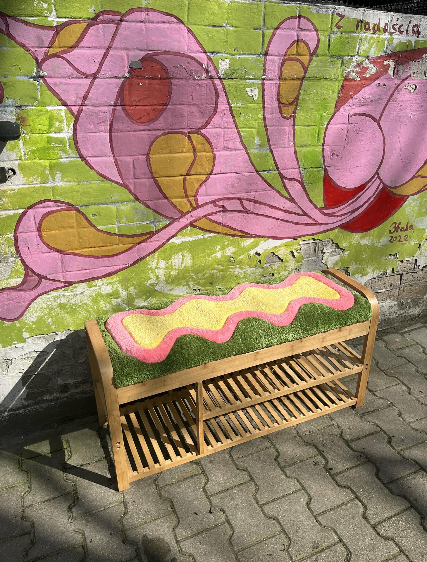 „Moją przygodę z tuftingiem zawdzięczam pandemii” – wyjawia Ola. Wtedy to odwołano jej projekty, przy których pracowała jako kostiumograf. Miała dużo czasu i jeszcze więcej kreatywności, więc postanowiła to wykorzystać.