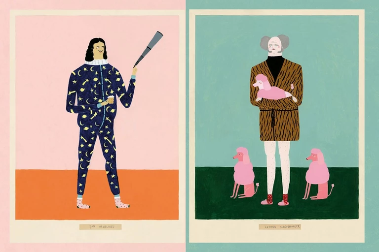 Autorka osadziła ich w kontekście domowym, odnosząc się do miasta, z którym byli związani, ubierając ich w pidżamę oraz przedstawiając ich z charakterystycznymi atrybutami: Jan Heweliusz, Sat-Okh i Artur Shopenhauer.
