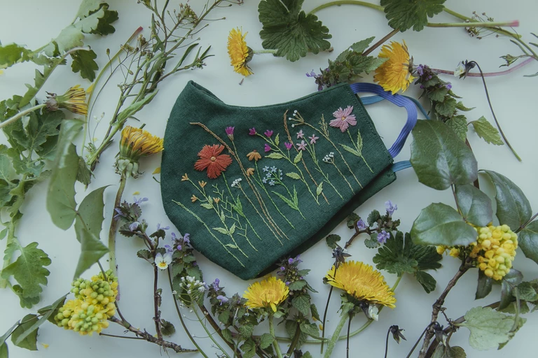 „Lilu to głównie haft, za pomocą którego staram się uchwycić obrazy natury. Wyszywam głównie łąki i kwiaty, ale zdarzają się też ptaki, żuki i pszczoły. Opowiadam o tym co ważne, przybliżam do świata, którego jesteśmy częścią” – mówi Kornelia Machura autorka prawdopodobnie najpiękniejszej maseczki chroniącej twarz jaką widzieliście.