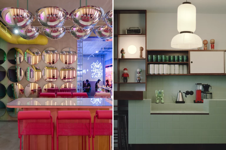 Bajkowo, cukierkowo i bardzo różowo, niemal jak ze snu Williego Wonki. Koktajlbar CANDY zachwyci fanów romantycznych wnętrz, pastelowych kolorów i neonów. Już od progu trudno się nie uśmiechnąć – witają nas neonowe cukierki, lizaki i muffiny oraz unoszące się przy suficie balonowe chmurki. Autorką projektu jest Emilia Szczudło z pracowni z E’SpaceStudio. Gamę kolorystyczną wnętrza zbudowała na połączeniu pastelowego różu i błękitu. Mocnym akcentem jest pasiasta, czarno-biała tapeta ułożona na suficie. Ten motyw architektka zastosowała także do wykończenia wnęk okiennych, podłogi w strefie łazienkowej i kolumny.