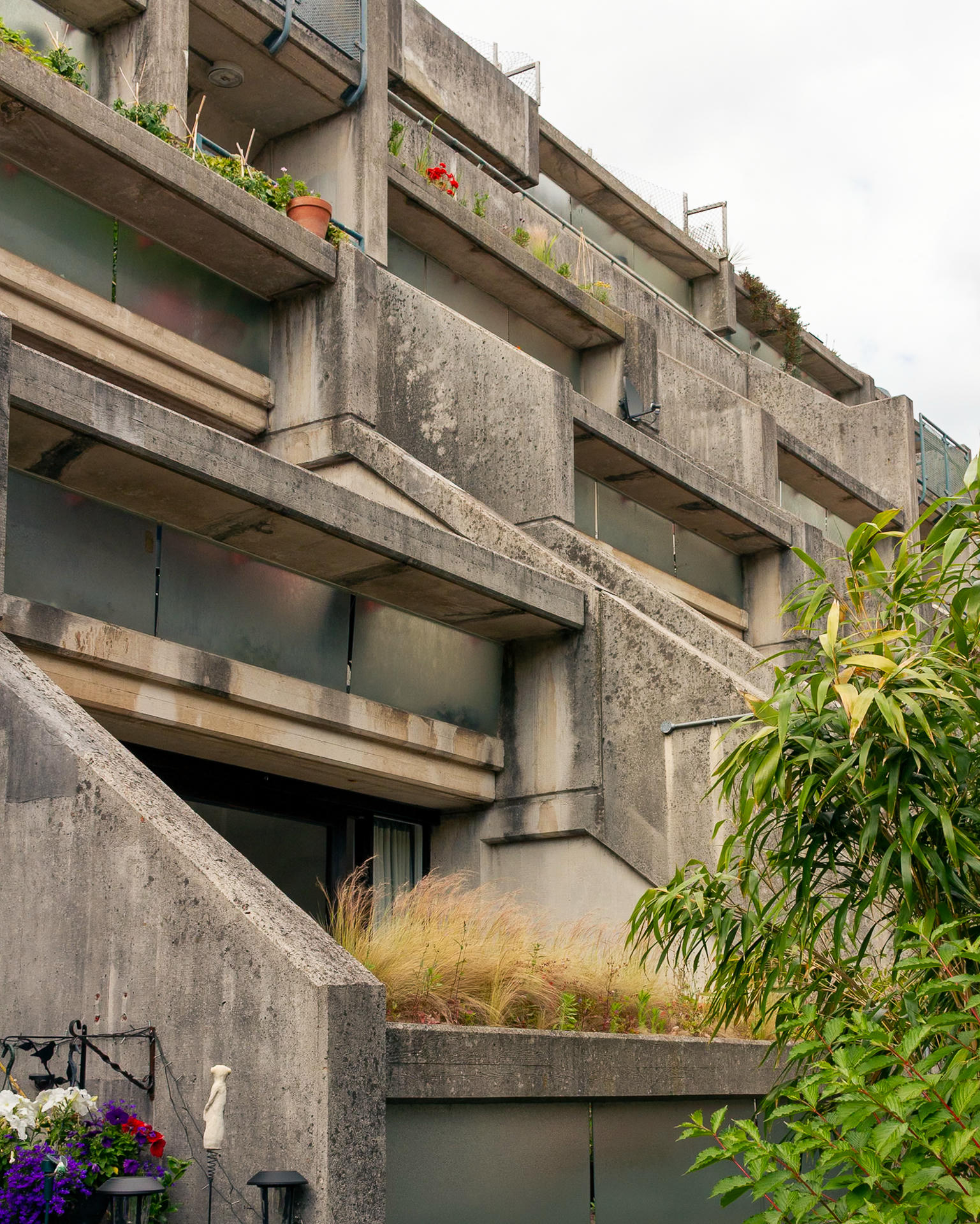 W przeciwieństwie do wielu realizacji w nurcie brutalizmu projekt Browna kładzie nacisk na skalę człowieka: mieszkania oferują dostęp do prywatnych tarasów, dobre doświetlenie oraz bezpośredni kontakt z przestrzenią publiczną i naturą. Kompleks składa się z trzech równoległych pasów zabudowy, które biegną wzdłuż torów kolejowych. Najwyższy, ośmiokondygnacyjny budynek przybiera schodkową formę i pełni funkcję bariery akustycznej.