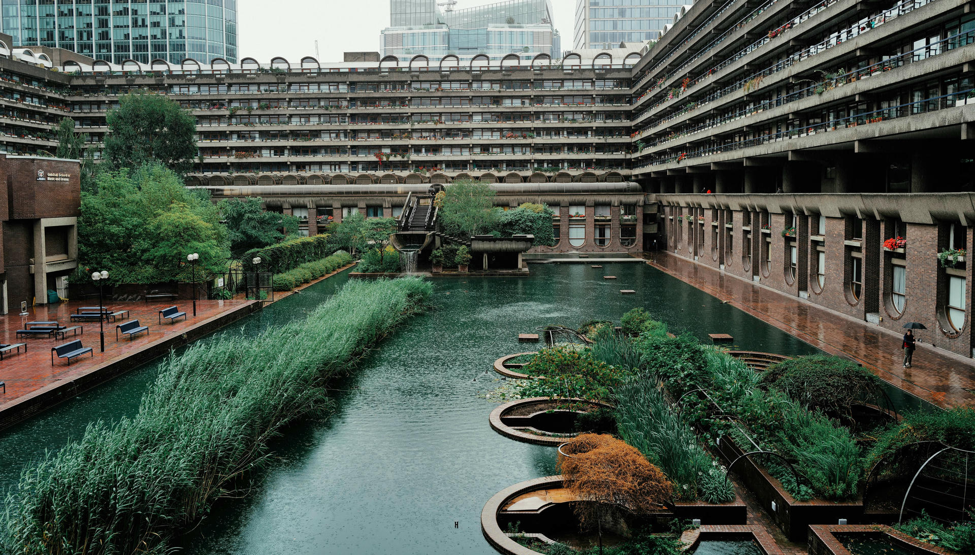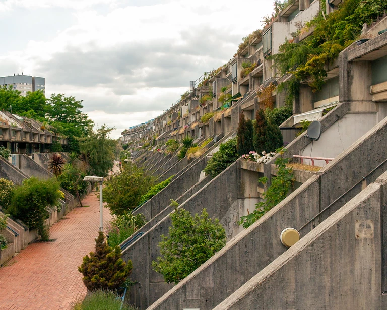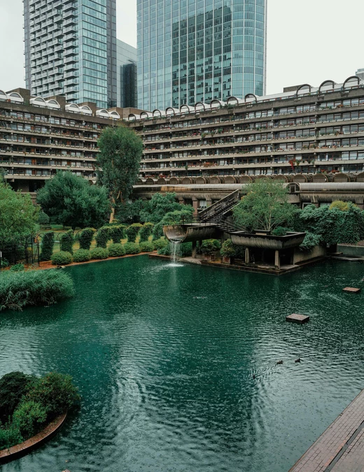 Barbican powstał na terenach zniszczonych podczas II wojny światowej i stał się jednym z najbardziej wyrazistych przykładów powojennej odbudowy Londynu. Zaprojektowany przez trio architektów – Petera Chamberlina, Geoffreya Powella i Christopha Bona – brutalistyczny kompleks wznoszono ponad dekadę, a jego budowę ukończono w 1982 roku.