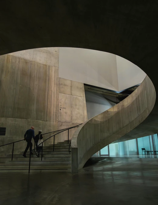 W podziemiach również znajdują się wyjątkowe przestrzenie wystawiennicze: dawne zbiorniki na olej przekształcono w surowe, podziemne galerie, zachowując ich industrialny charakter.
