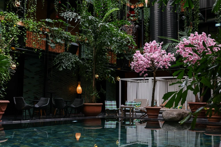 Manon Les Suites to ekskluzywny hotel pięciogwiazdkowy dla dorosłych, w którym wszystkie pokoje skupione są wokół bardzo instagramowego basenu, którego wygląd inspirowany jest Bali. Zielone rośliny i szmaragdowa woda pozwolą nam wręcz zapomnieć, że znajdujemy się w bliskiej odległości od głównych punktów Kopenhagi, jak Ogrody Tivoli czy targ Torvehallerne. Każdy z 87 znajdujących się w Manon Les Suites pokoi urządzony jest w przyjemny stylu. Jest tu dużo drewna, ale też betonu, którego surowy charakter łagodzą kolorowe dywany oraz inne przytulne tekstylia. Do dyspozycji goście hotelu mają ekologiczne kosmetyki, a śniadania przygotowuje się z organicznych produktów.