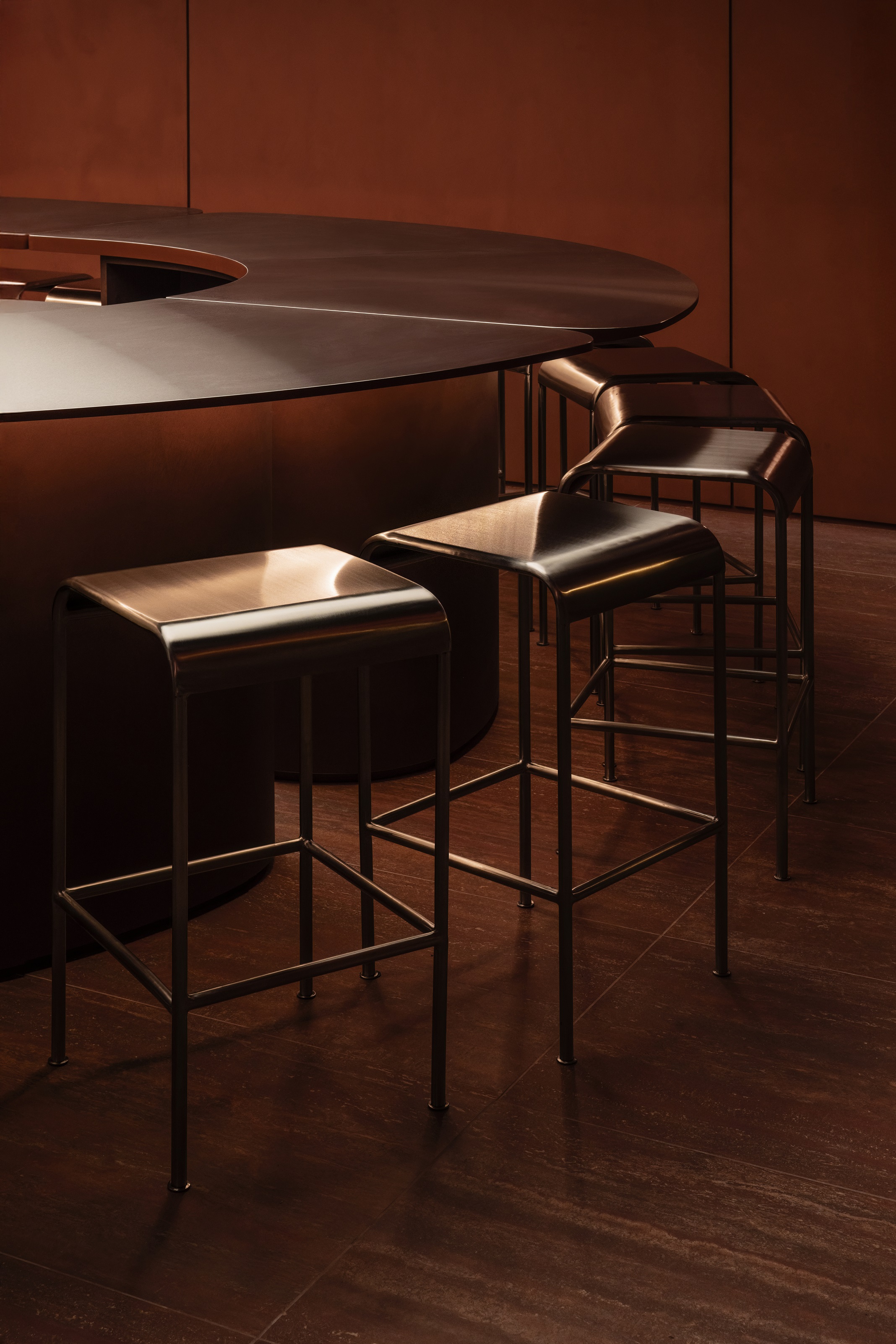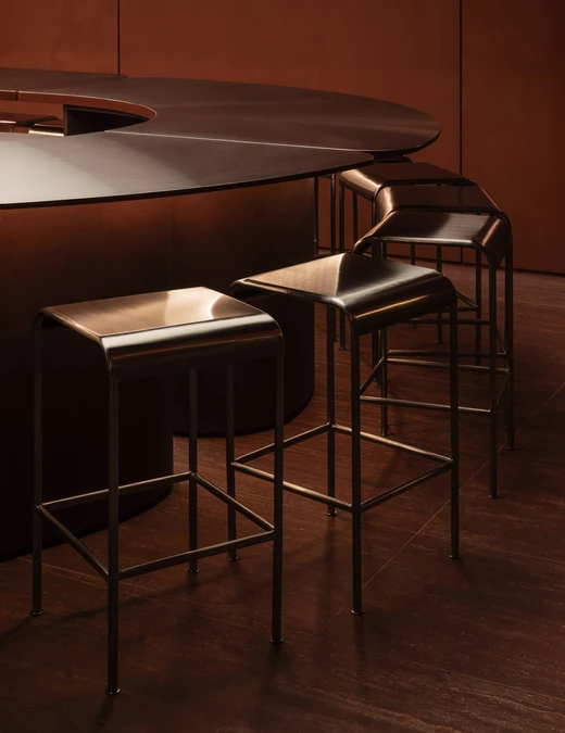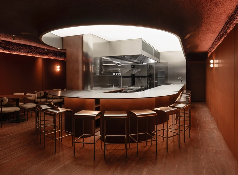 Kluczowe pytanie, jakie zadali sobie architekci brzmiało tak – jak przenieść intensywność spektaklu na grunt gastronomii? Odpowiedź na to pytanie znajduje się w proporcjach krzeseł, odległości siedzisk od blatu i samym układzie miejsc. Wszystkie zwrócone są w stronę kuchni, z której korzysta szefowa kuchni Erica Paredes. Zamiast tradycyjnej obsługi przy stolikach, wybrano formułę baru. I tak potrawy trafiają bezpośrednio z rąk szefowej na blat przed gośćmi, a wymiana zdań staje się częścią doświadczenia.