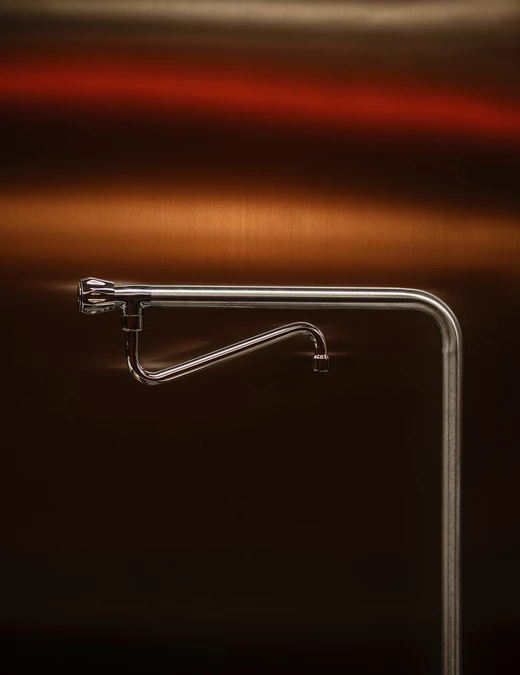 Zespół projektantów ze studia ArtPill odpowiedzialnego za projekt restauracji, zmienił układ posadzek, ścian i sufitów, uporządkował proporcje, a nawet obniżył poziom podłogi, aby uzyskać dodatkową wysokość pomieszczenia – kluczową dla nowej tożsamości wnętrza. Tę wysokość wykorzystali zarówno do poprowadzenia instalacji technicznych, jak i do budowania odpowiedniej perspektywy na kuchnię, z myślą o kontakcie wzrokowym i bliskości między gośćmi a personelem.