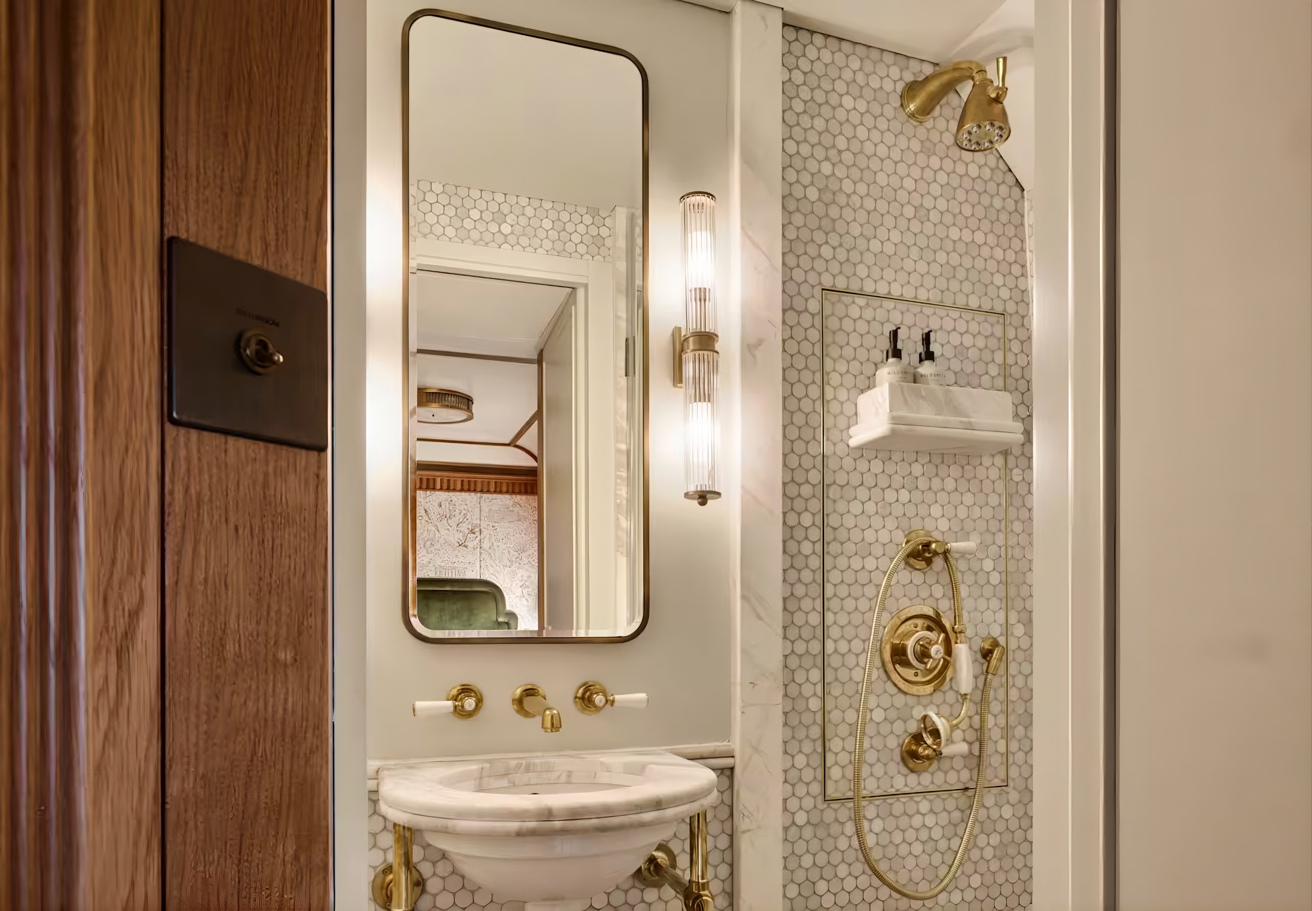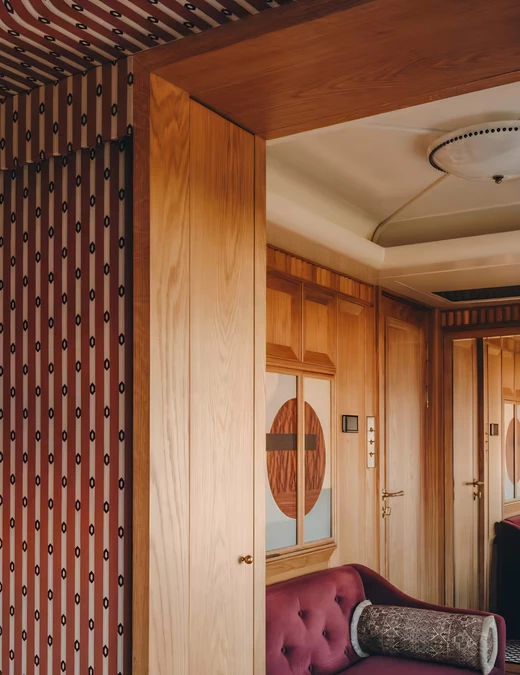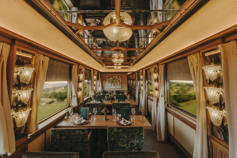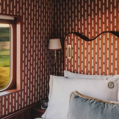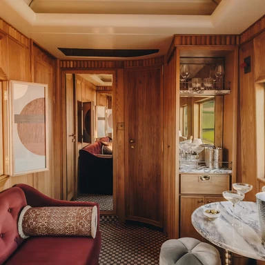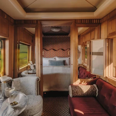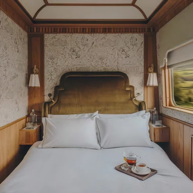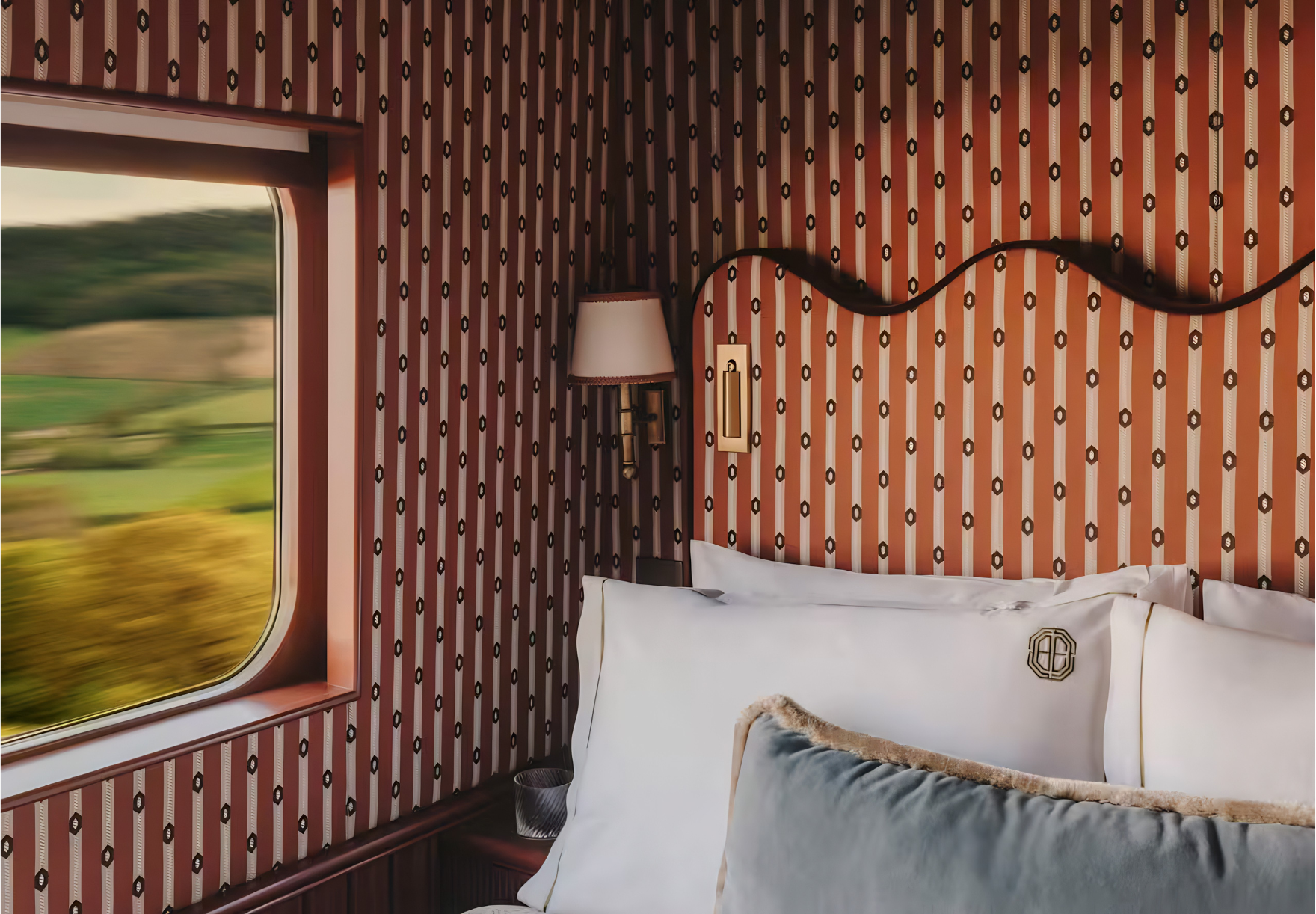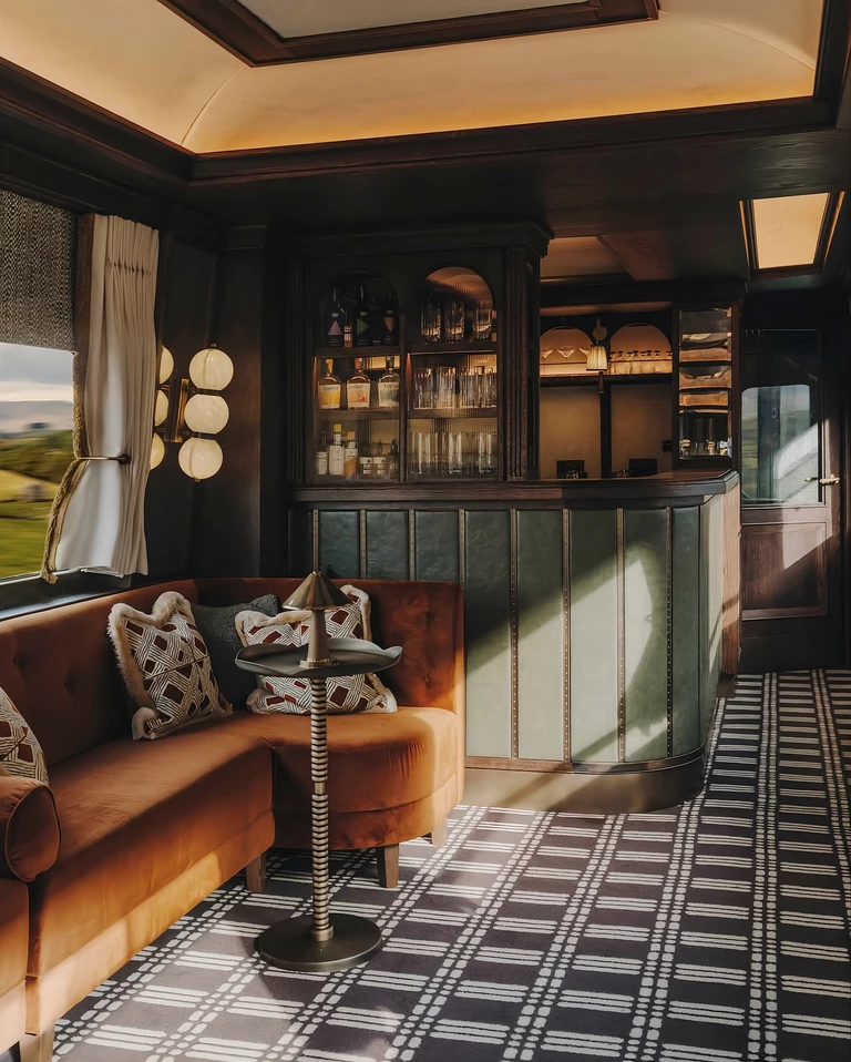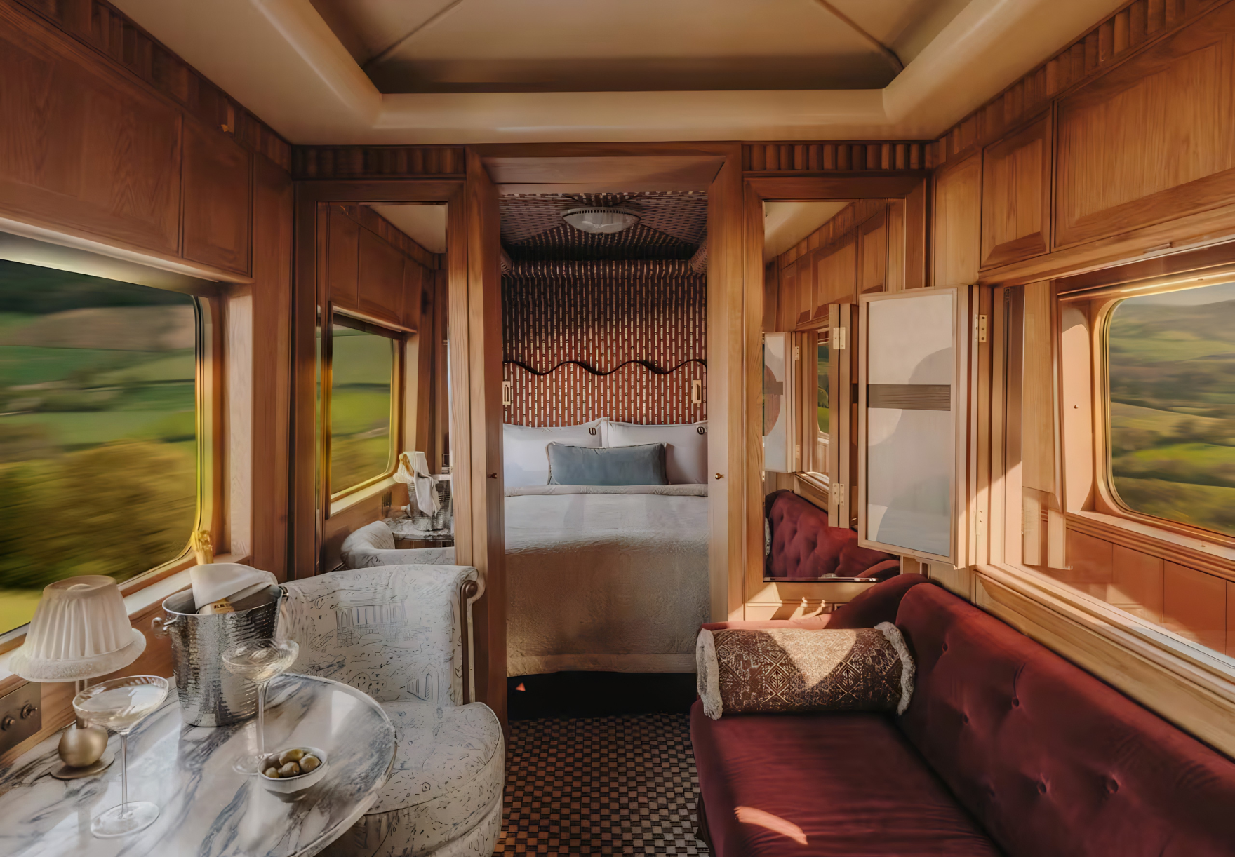 Kabiny typu Suite wykończono tkaninami z grafikami Luke’a Edwarda Halla, a ich kolorystyka - zieleń i błękit - odnosi się bezpośrednio do angielskich pól oraz wybrzeży. Pociąg porusza się po trasach prowadzących przez malownicze zakątki Kornwalii, Lake District czy Walii, oferując pasażerom kontakt z naturą przez okna, które projektanci traktują jako „zmienną tapetę” całej podróży.