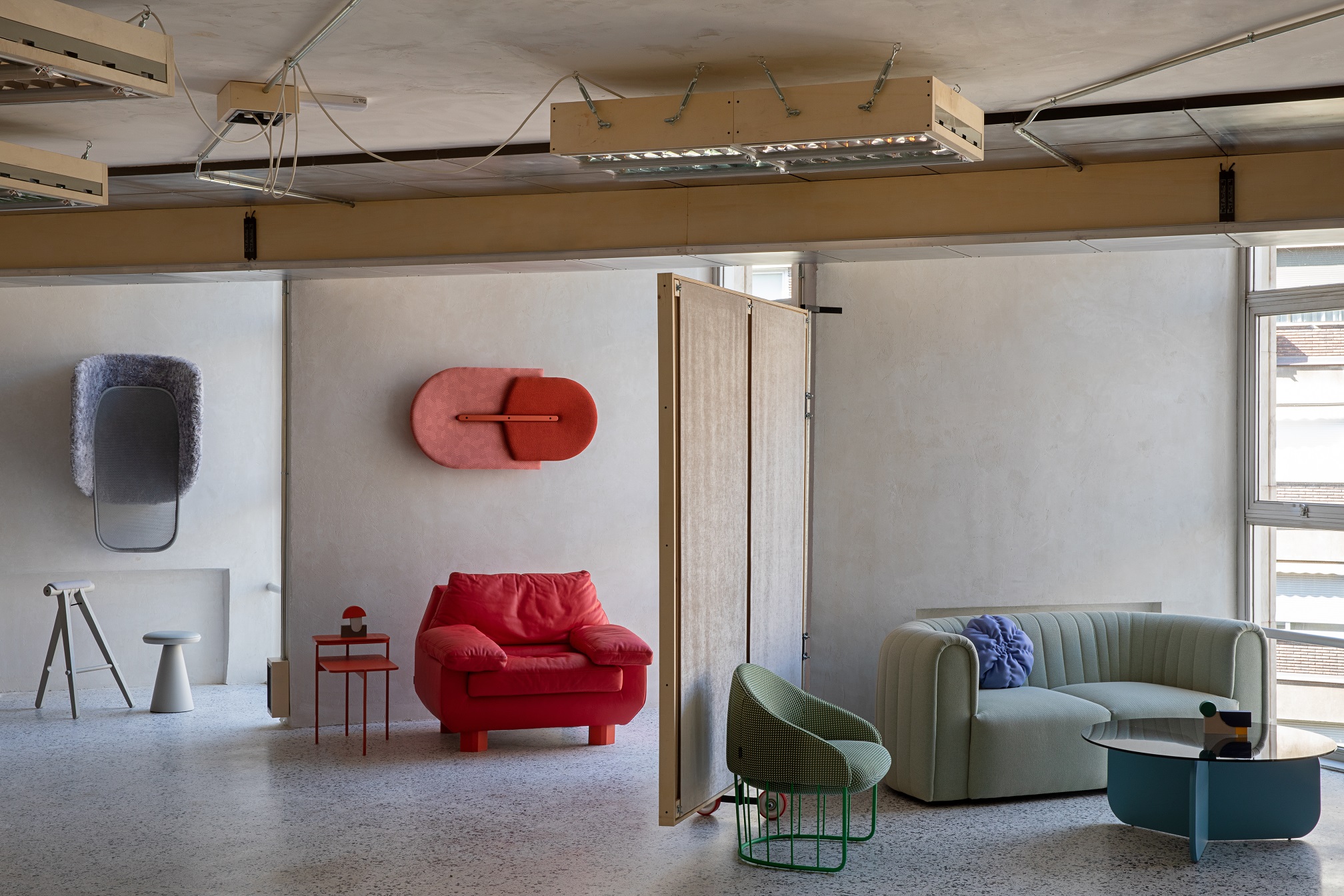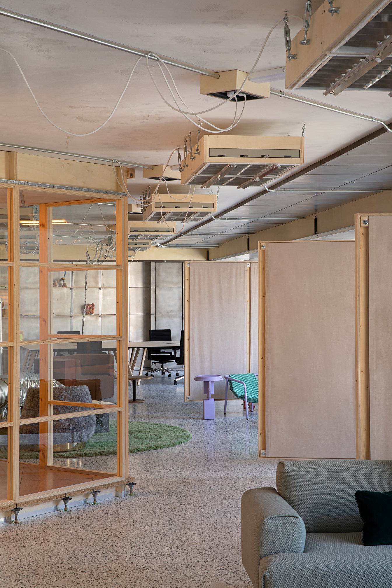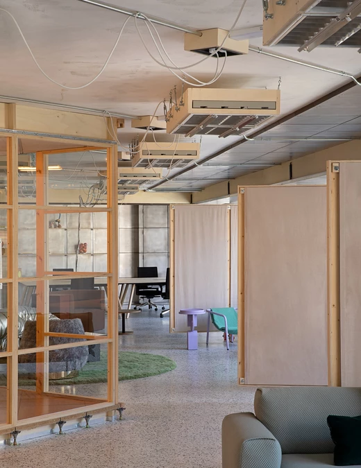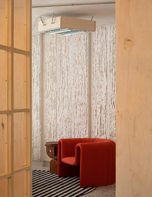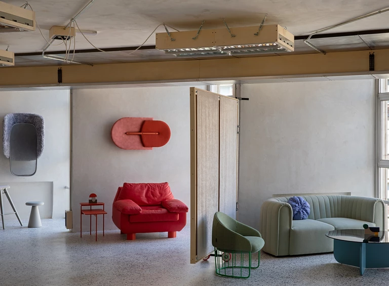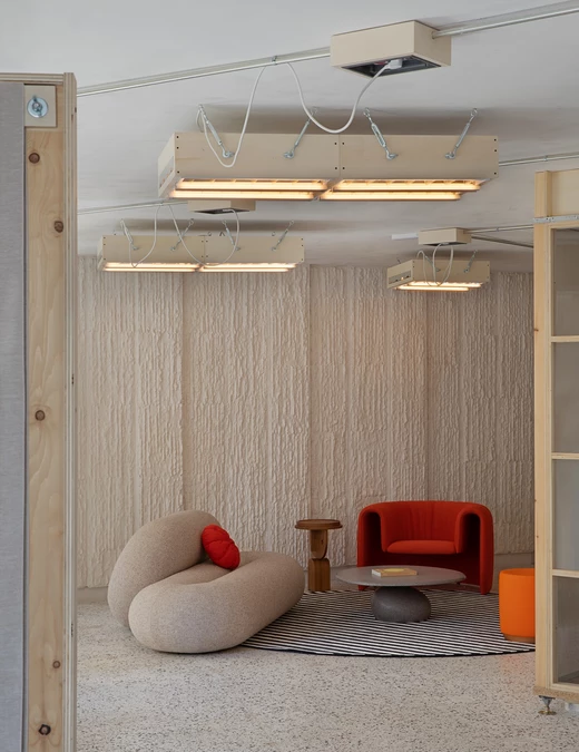 Wnętrze COLAB-u nie przypomina typowych przestrzeni ekspozycyjnych. Zamiast perfekcyjnego wykończenia i neutralnego tła dla mebli, dominuje tu narracja o przemianie i recyklingu. Główny projektant, Lucas Muñoz Muñoz, znany z eksperymentalnego podejścia do projektowania, zachował większość istniejących elementów budynku, nadając im nowe znaczenie.