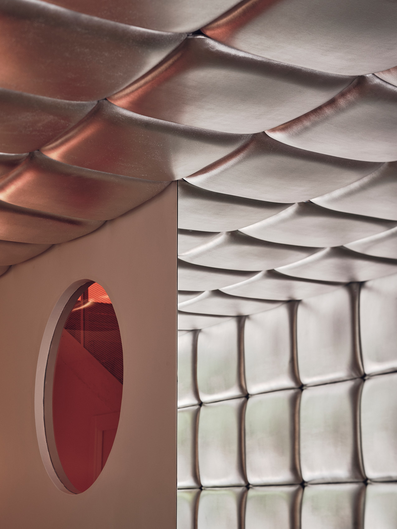 Jak mówi architekt Isern Serra, punktem wyjścia była sama nazwa i kulinarne DNA RELLENO. Relleno oznacza po hiszpańsku farsz, więc Isern Serra przełożył ideę nadziewanego makaronu na motyw architektoniczny w postaci miękkich modułów – poduszek z pianki obitych metaliczną tkaniną włoskiej produkcji. Te elementy, pieszczotliwie nazwane przez projektantów „rellenos”, układają się w siatkę prowadzoną przez kolejne strefy i kondygnacje, budując spójny i zapadający w pamięć wizerunek wnętrza.