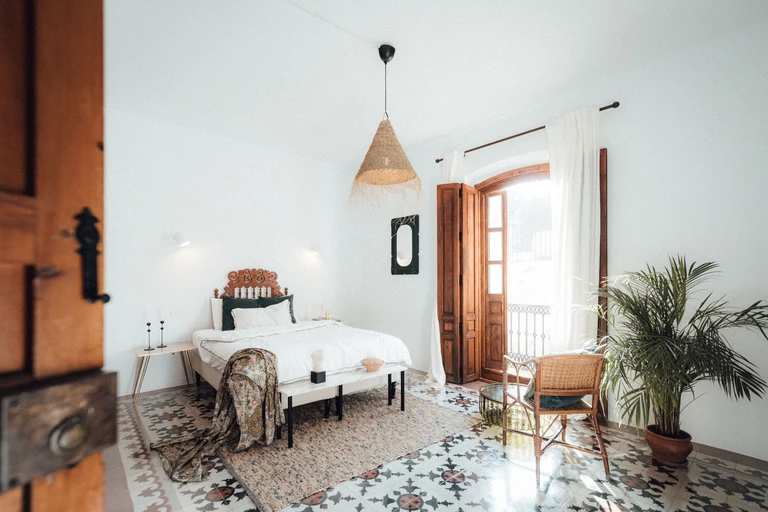 Ten liczący około 800 m2 dom pomieści 16 osób. Na parterze mieszczą się część wspólna z kominkiem, kuchnia i duży stół do ucztowania w klimacie hiszpańskiej sobremesy, zaś na piętrze sypialnie i łazienki. Na patio znajduje się basen. Otaczające go palmy i kaktusy tworzą przestrzeń idealną do wypoczynku. O dom i ogród dbają przyjaciele domu – Carmen, Delfina i Fernando.