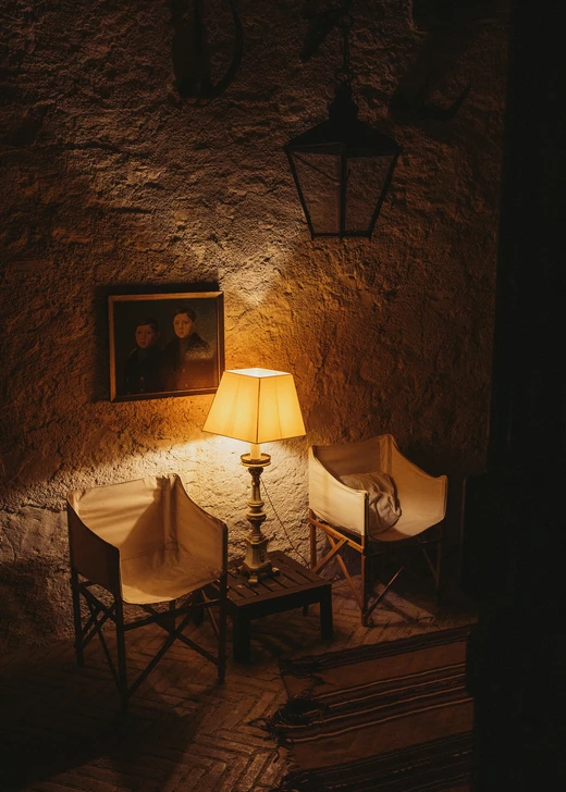 Dom nie został urządzony w typowym dla regionu rustykalnym stylu. Przeciwnie - wnętrza są przytulne, niewymuszone i oddają osobowość jego mieszkańców. To przestrzeń pełna wyjątkowych mebli - jak antyczna toaletka w przedpokoju - odziedziczonych po bliskich lub starannie wyszukiwanych przez lata w ulubionej galerii antyków Di Castro w Rzymie, pamiątek z podróży i lokalnego rzemiosła. Za jej unikalny charakter odpowiada Giovina, córka właścicieli, która jako projektantka tekstyliów (ręcznie tkanych dywanów Tapistelar) zadbała o detale, nadając wnętrzom ciepło i osobisty charakter. Jej zmysł estetyczny i zamiłowanie do piękna widoczne są w każdym zakamarku posiadłości.