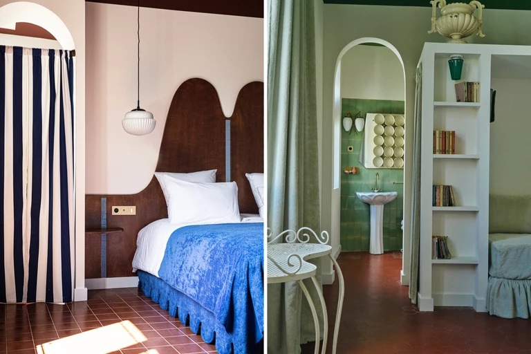 Aranżacja wnętrz przenosi gości do lat 50. ubiegłego wieku. Nie brakuje tu mebli w stylu mid-century modern, wyraźnych form, w tym łuków i fal, oraz przede wszystkim barw. W każdym z pokojów dominuje jeden z czterech kolorów – niebieski, różowy, zielony bądź żółty. Powiązane są one z unikalnymi motywami dekoracyjnymi: tropikalnym, rokokowym, prowansalskim i śródziemnomorskim. Elementy, takie jak obszerne prysznice i wanny, sześciokątne płytki ceramiczne czy stolarka wykonana z dbałością przez marsylskiego rzemieślnika Romaina Davidico, tworzą razem niepowtarzalną przestrzeń o eleganckim charakterze.