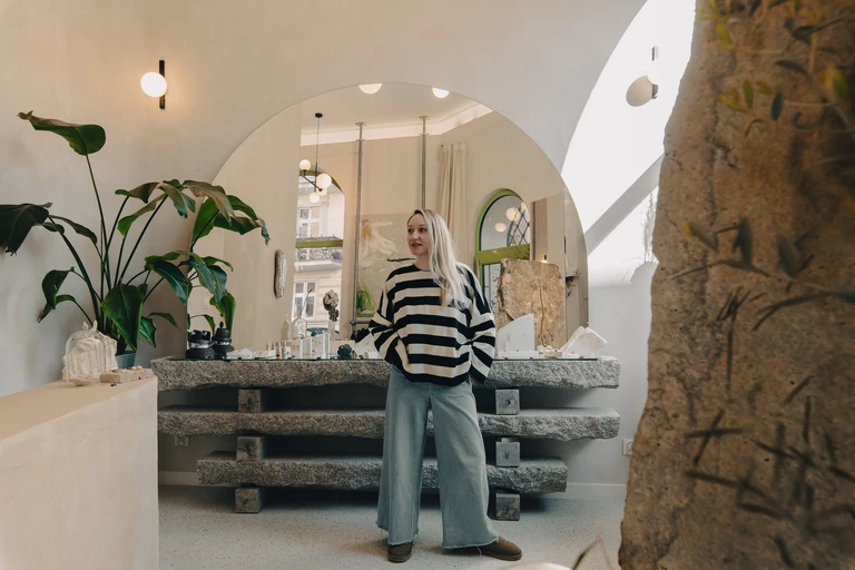 Na skrzyżowaniu ulic Staszica i Szamarzewskiego, w sercu poznańskich Jeżyc niegdyś znajdował się sklep spożywczy – dziś ta przestrzeń zyskała zupełnie nowe przeznaczenie i oblicze. Agnieszka Jankowiak, założycielka marki Gusta, otworzyła tu butik oraz warsztat złotniczy. Zaprojektowanie wnętrza lokalu powierzyła architektom z pracowni mode:lina™ i artyście VonMotzowi, którzy swoją aranżację oparli o połączenie stali, tynku, lustra i kamieni.