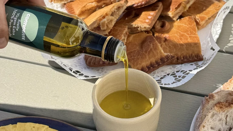 Kolejnym z miejsc, do których wracam najczęściej, jest bar Ar d’Mar, położony tuż przy plaży w Praia de Canide Norte. To idealny adres na spokojne, zdrowe śniadanie z widokiem na ocean. Choć portugalska klasyka śniadaniowa to tost z masłem i kawa, tutaj można zjeść świeże owoce z granolą, smoothie, jagody goji - a wszystko w luźnej, niezobowiązującej atmosferze. Kawa, a czasem i kieliszek wina, idealnie wpisują się w lokalny rytm dnia.