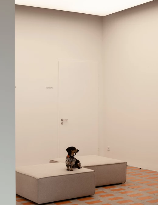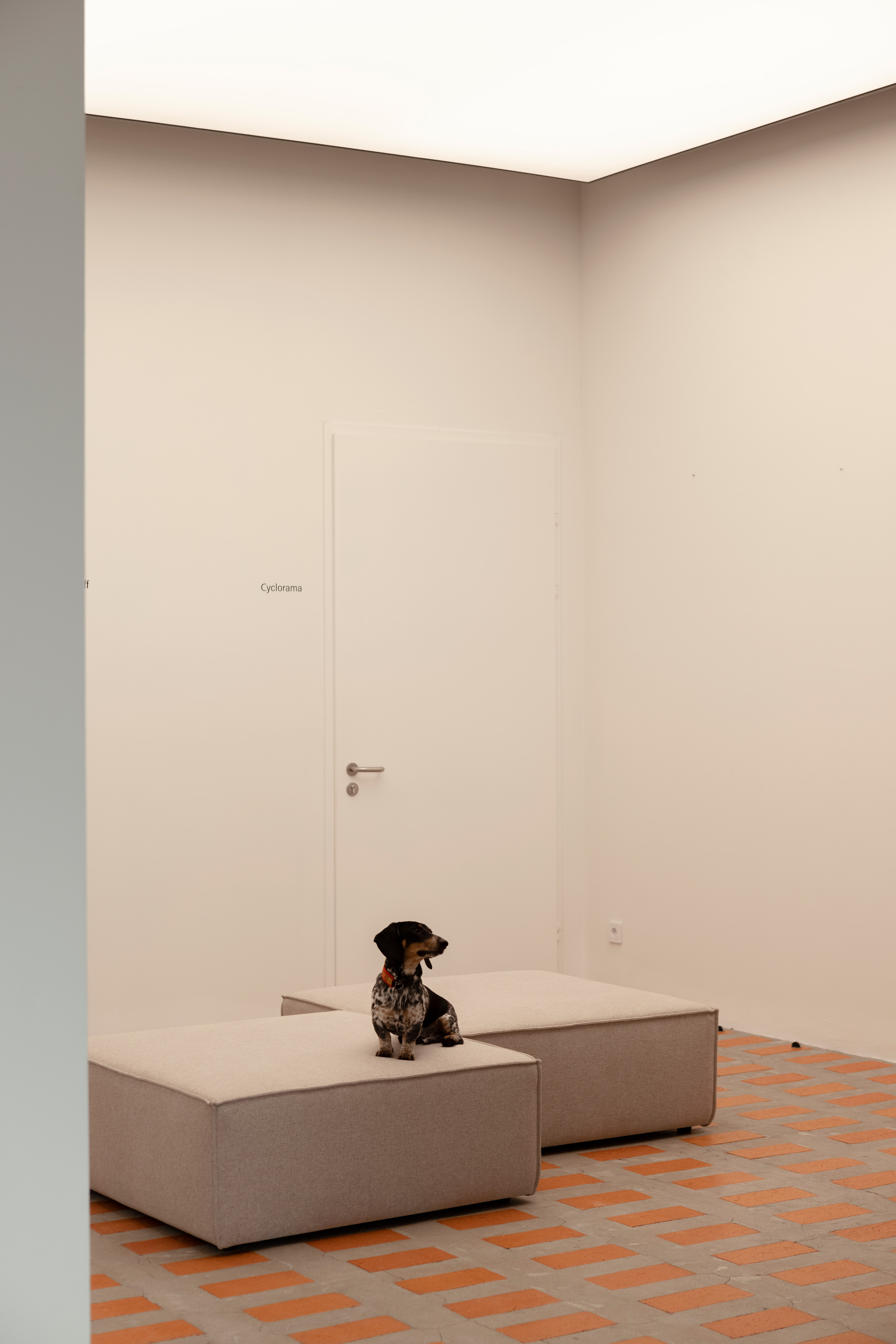 Najważniejszą częścią projektu są trzy hale zdjęciowe. Największa, Cyclorama, z imponującą cykloramą 5×5 m i podświetlanym sufitem, kontrastuje bielą ścian i geometrycznym porządkiem z historyczną mozaiką podłogi.