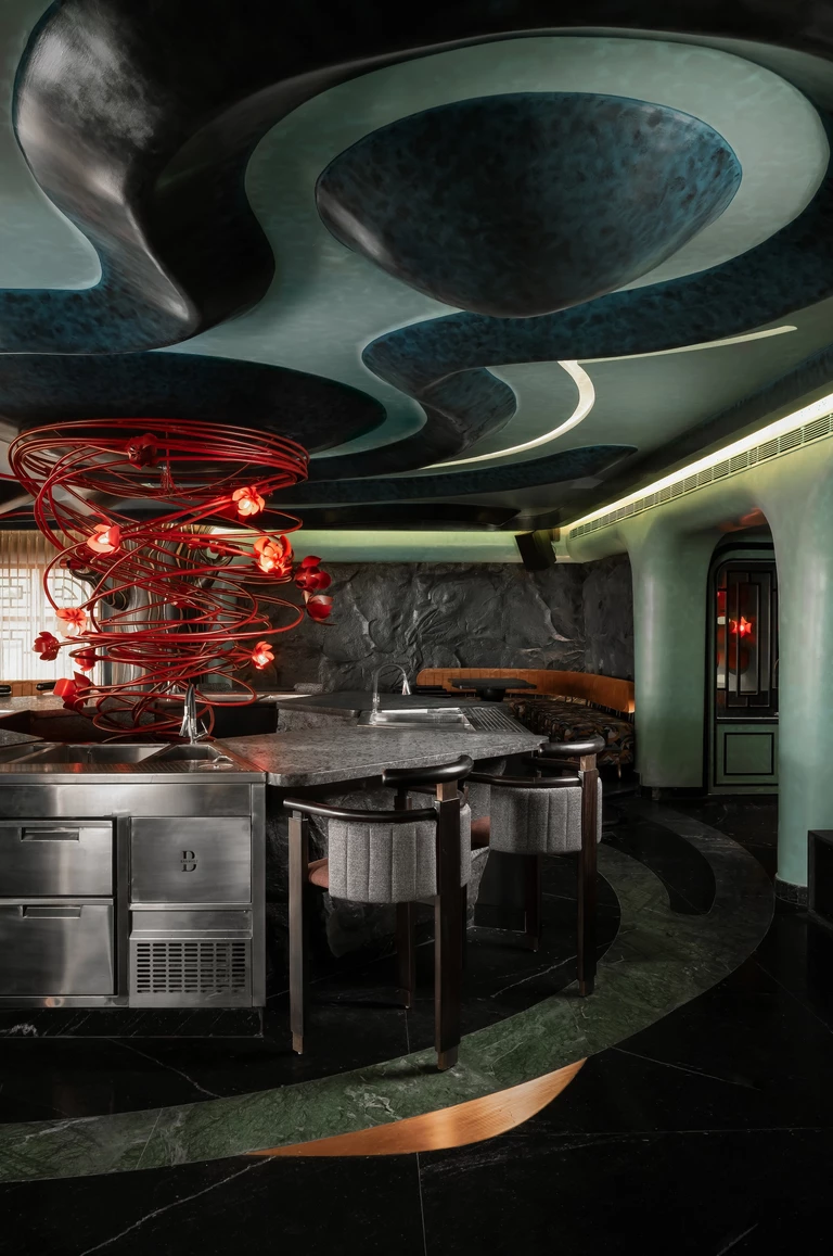 W Indiach, w mieście Bengaluru, powstał bar, który odchodzi od klasycznego układu i proponuje bardziej bezpośrednie doświadczenie. Nie ma tu hierarchii – barmani stoją tuż obok, przygotowując drinki na bieżąco, a goście siedzą dookoła nich. Za projekt wnętrza odpowiada pracownia Studio Camarada.