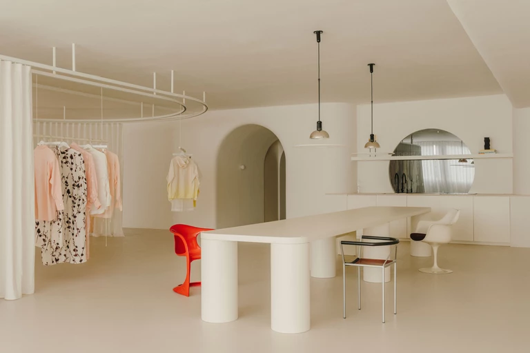 Marka Eikō Ai od lat buduje swój świat wokół inspiracji japońskim rzemiosłem i wielobarwnością światła. Jej znakiem rozpoznawczym stały się sukienki typu kimono, które łączą subtelne wzory z nowoczesnym podejściem do mody. Teraz te projekty zyskały nową oprawę. Studio Isern Serra zaprojektowało dla marki w Barcelonie nowy showroom, który pełni funkcję pracowni, biura i miejsca spotkań z klientami.
