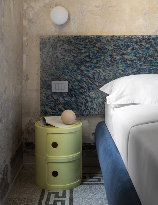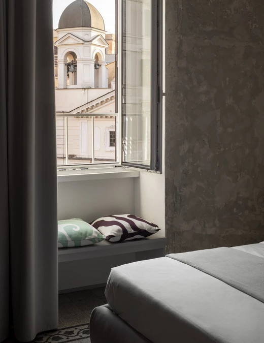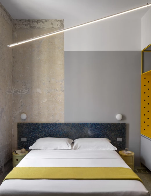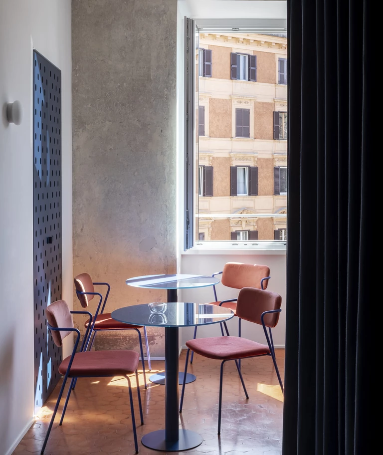 Dzięki punktowym zabiegom kolorystycznym, zróżnicowanym fakturom i świadomie pozostawionym śladom przeszłości, architektom udało się stworzyć przestrzeń, która niczym samo Esquilino, jest pełna kontrastów, ale zarazem spójna.