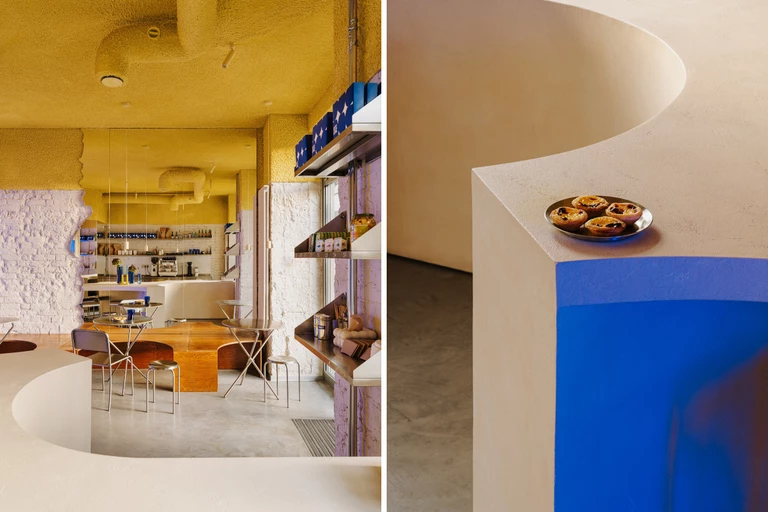 Pastelowe to ciastkarnia na warszawskim Solcu, która przenosi gości wprost na portugalski surf camp. A to za sprawą kultowego wypieku, którego można tu skosztować, czyli pastéis de nata, oraz wnętrza inspirowanego wybrzeżem Portugalii. Za projekt lokalu odpowiada zespół z pracowni Znamy się: Bogna Kawa-Nowak, Wojtek Nowak i Monika Jokiel.
