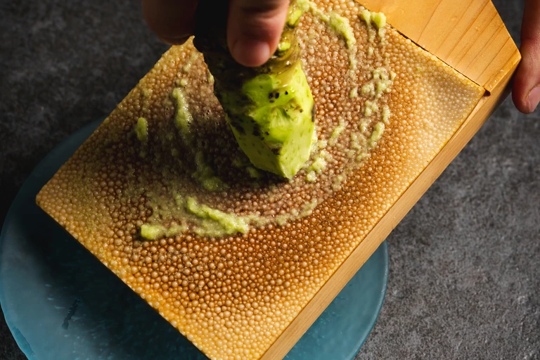 Przyzwyczailiśmy się do wasabi w formie zielonej pasty, ale to, co najczęściej ląduje na talerzach, to jedynie imitacja. Prawdziwe wasabi ma zupełnie inną naturę – jego ostrość pojawia się stopniowo, delikatnie otwiera smaki, by po chwili zniknąć, pozostawiając zaskakująco ziołowy, lekko słodkawy finisz. Właśnie ten niuansowy charakter stał się punktem wyjścia do stworzenia omakase – menu, w którym każdy element podkreśla nieoczywistość tego składnika. „Nie chodzi o intensywność, ale o precyzję. Wasabi ma uzupełniać, a nie dominować” – podkreśla Joshua Tracey.