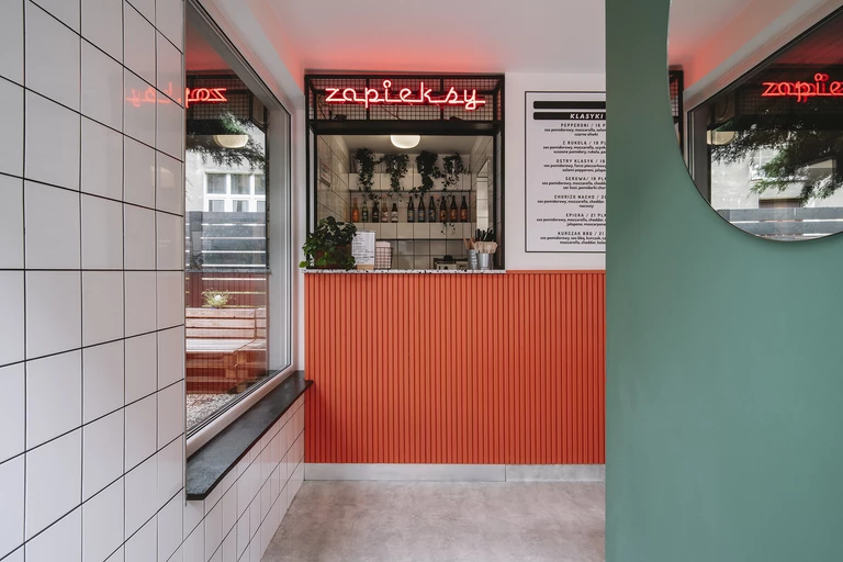 Zapiekanki, czyli specjalność tego miejsca, nieodzownie kojarzą nam się z czasami naszego dzieciństwa, z latami 90-tymi. To właśnie te lata były dla nas inspiracją przy tworzeniu palety barw i materiałów dla tego wnętrza. Zadanie byo intrygujące: to pierwszy stacjonarny lokal Bufet Truck, lokal jest malutki (łącznie z zapleczem przestrzeń to ok 35m2), budżet był ściśle określony i prowokował nas do poszukiwania kreatywnych rozwiązań. Ta mieszanka, połączona ze świetną energią i pełnym zaufaniem ze strony Oli i Maćka, zaowocowała nietuzinkową przestrzenią.