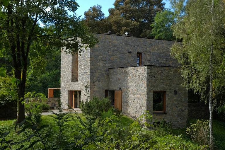 Za projektem tego budynku stoi Marek Zarzeczny. Architekt bez wątpienia ma świadomość, że w celu wykreowania wyjątkowego domu nie trzeba stawiać na nadmierną ilość mebli, dekoracji czy surowców. Zamiast tego zastosowano naturalne, nieprzetworzone materiały –  drewno i kamień.