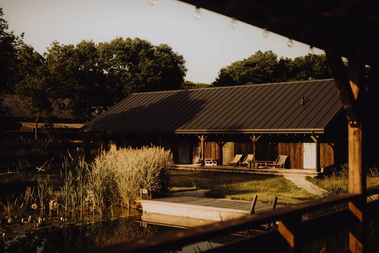 Goście mają do dyspozycji dwa domy wybudowane w technologii „strawbale”, czyli konstrukcji szkieletowej wypełnionej słomą, a także staw kąpielowy. Oprócz tego wart uwagi jest fakt, że właściciele wspierają bioróżnorodność – nie koszą trawy, aby tworzyć tym samym kryjówki dla zwierząt.