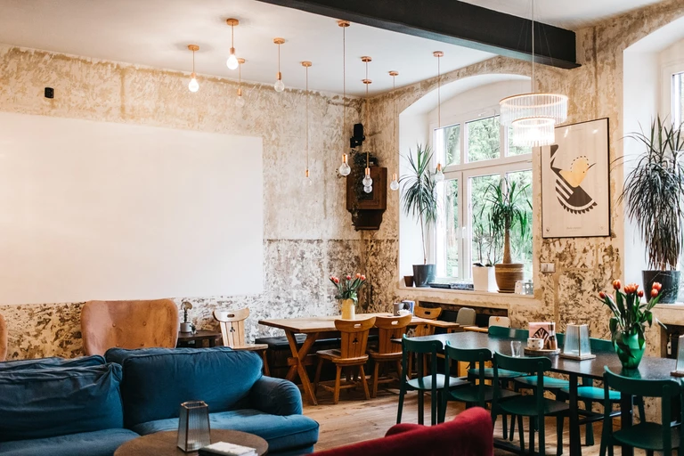 Budynek KWIECI został wybudowany w 1913 roku jako ewangelicka szkoła. W domu zachowały się autentyczne elementy, o które właściciele dbają i odpowiednio eksponują – oryginalne belki konstrukcyjne, 108-letnia drewniana podłoga, kamienne schody czy przepiękne dębowe drzwi frontowe, które zostały zrewitalizowane i pomalowane na kobaltowy kolor.