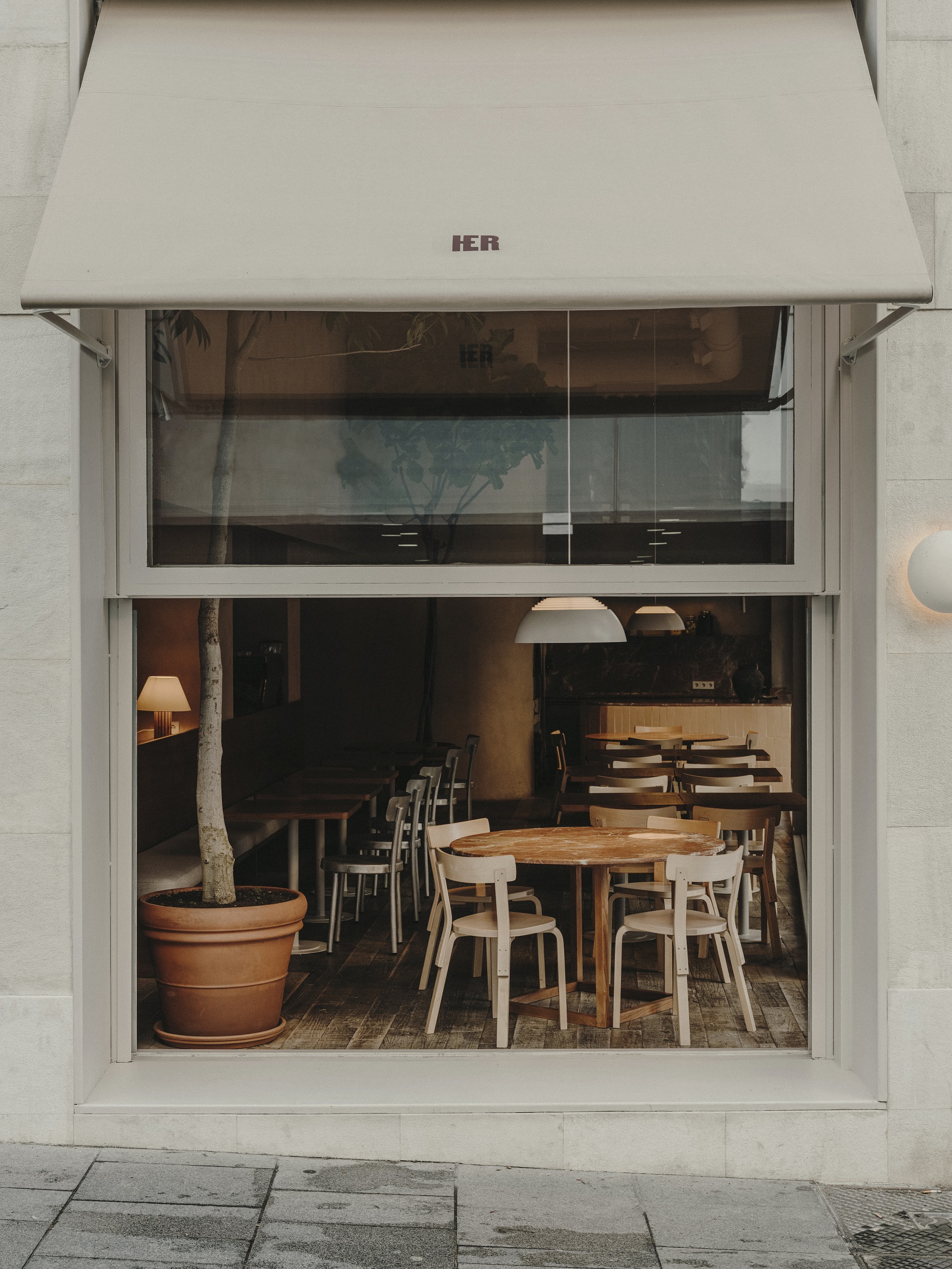 Her to lokal znajdujący się w Madrycie, w budynku autorstwa architekta Gutiérreza Soto. Restaurację definiuje konsekwentna paleta w barwach ziemi oraz wyeksponowana struktura betonu, cegły i tynku. Wnętrze tworzą ciemne drewno, koralowo-czerwony marmur i terakotowe zabudowy, uzupełnione o lekkie meble oraz oświetlenie Arne Jacobsena i Charlotte Perriand.