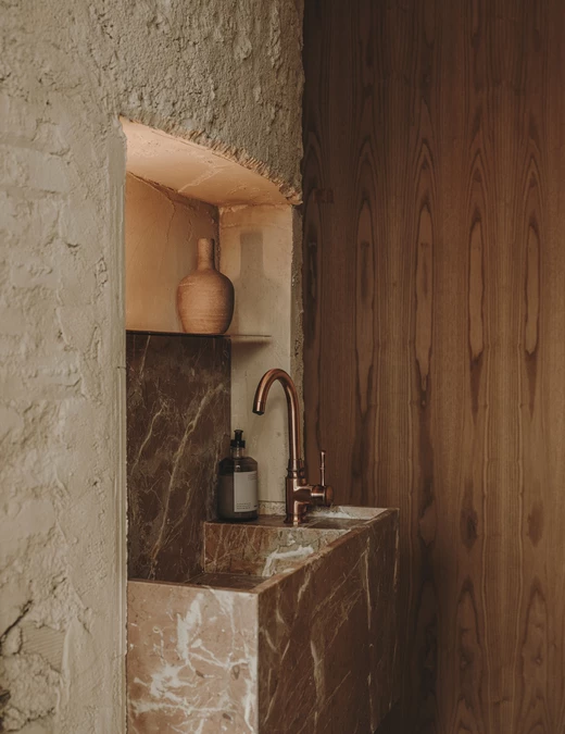 Terakota, marmur i ciemne drewno. Her według Plantea Estudio