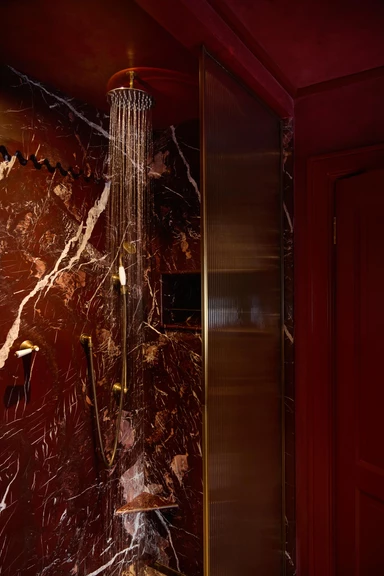 Piętro apartamentu ma bardziej intymny charakter i zostało pomyślane jako oaza relaksu. Sypialnia z dużym łóżkiem otwiera się na prywatny balkon z widokiem na Lion’s Head. Wyłożona marmurem łazienka z wolnostojącą wanną i detalami z patynowanego mosiądzu tworzy atmosferę spokoju i wyciszenia.