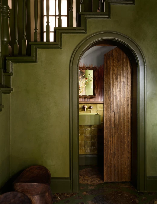 Użyta we wnętrzach paleta kolorystyczna - nasycone zielenie, głębokie indygo i ciepłe ochry - przywołuje na myśl południowoafrykańskie krajobrazy, a podłogi wykonane z terrazzo oraz wykończenia z naturalnego drewna i kamienia nadają przestrzeni elegancki, a jednocześnie pełen ciepła i domowego komfortu charakter.