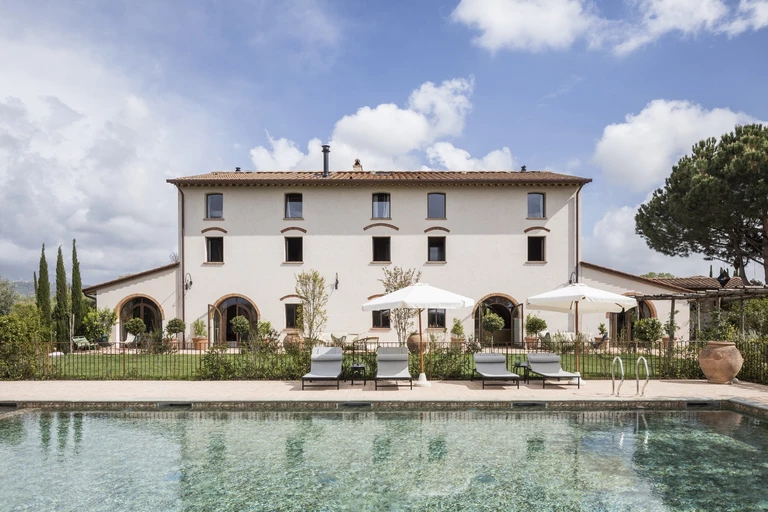 To prawdziwa perła na mapie Toskanii. Hotel mieści się w typowym dla regionu, wiejskim domu z końca XIX wieku. 8-hektarową nieruchomość, na której się znajduje, porastają głównie cyprysy i drzewa oliwne, tworzące razem malowniczy krajobraz. Ten zapierający dech w piersiach obraz nie jest jednak dziełem przypadku – ogród zaprojektował słynny francuski architekt krajobrazu, Jean Mus.
